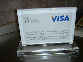 Pysyvä näyttely olikin sitten jo huomattavasti parempi ja antoisampi. Katsellessani Helsingin olympialaisten soihdun visakoivuista kahvaa mieleni täytti yllättäen kauhea nationalismin puuska. Mistä lie ilmestynyt. Varsinaisten näyttelyalueiden ulkopuolinen osa olikin sitten täynnä erilaisia mainoksia ja muutenkin kapitalismin valtaama. Kuriositeettina mainittakoon että yläkerran ravintola hyväksyi vain VISA-kortteja koska VISA on yksi olympialaisten pääsponsoreista.